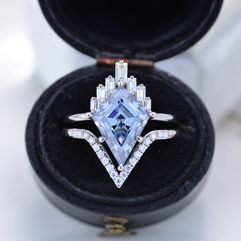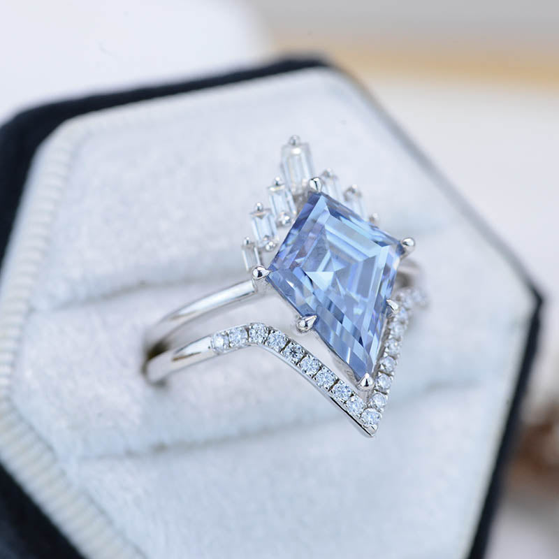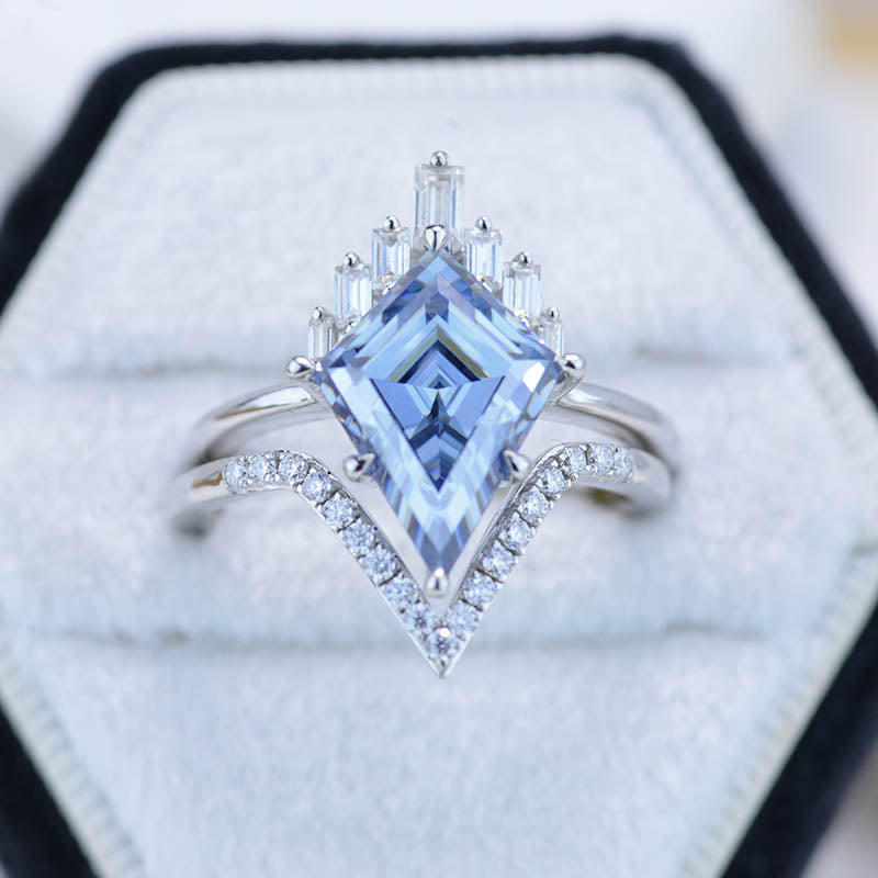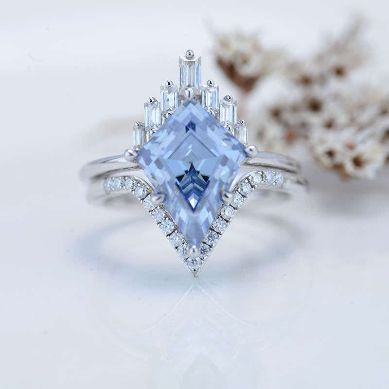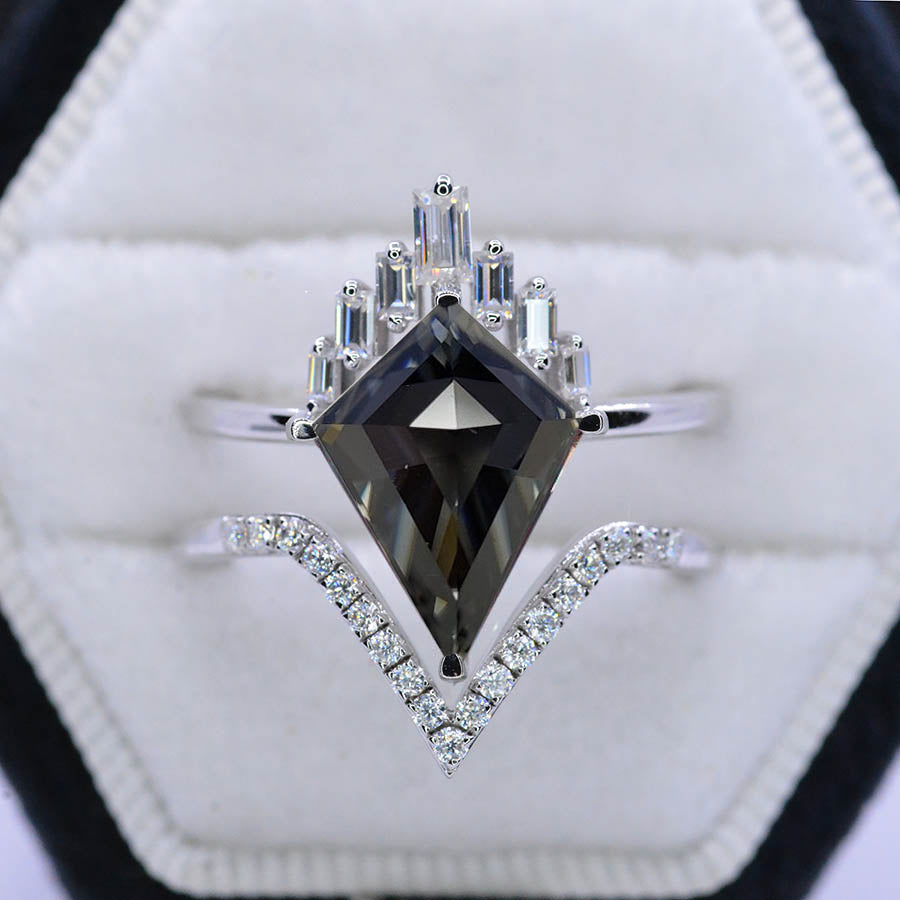 5 Carat Kite Gray Spinel Halo Engagement Ring, Eternity Ring Set