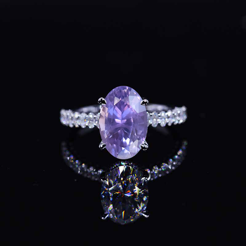5 Carat Oval Cut Lavender Purple Sapphire Hidden Halo White Gold Engag - Giliarto