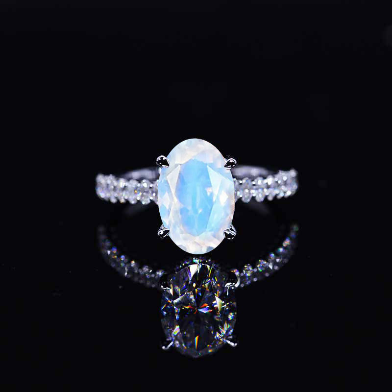 5 Carat Oval Cut Moonstone Hidden Halo White Gold Engagement Ring - Giliarto