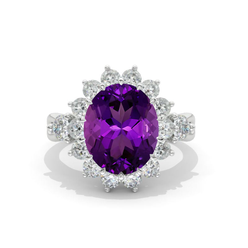 5 Carat Oval Natural Amethyst Halo Engagement Ring - Giliarto
