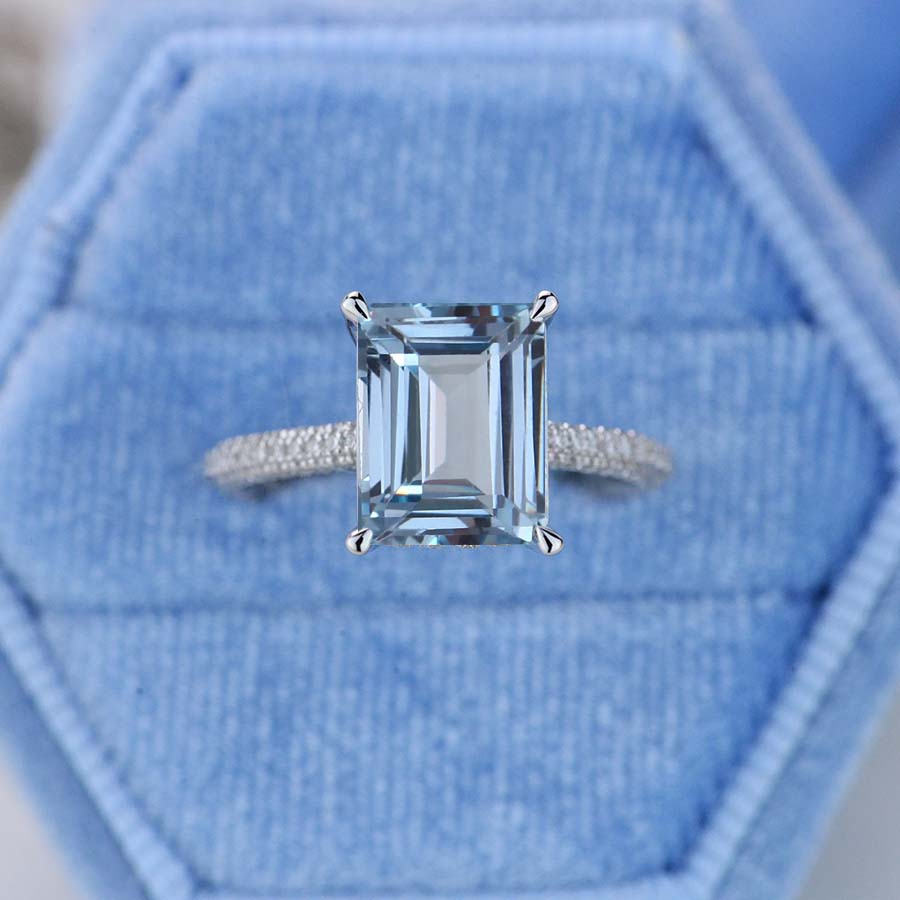 5ct Emerald Shaped Step Cut Aquamarine Ring, 5 Carat Aquamarine Engage - Giliarto