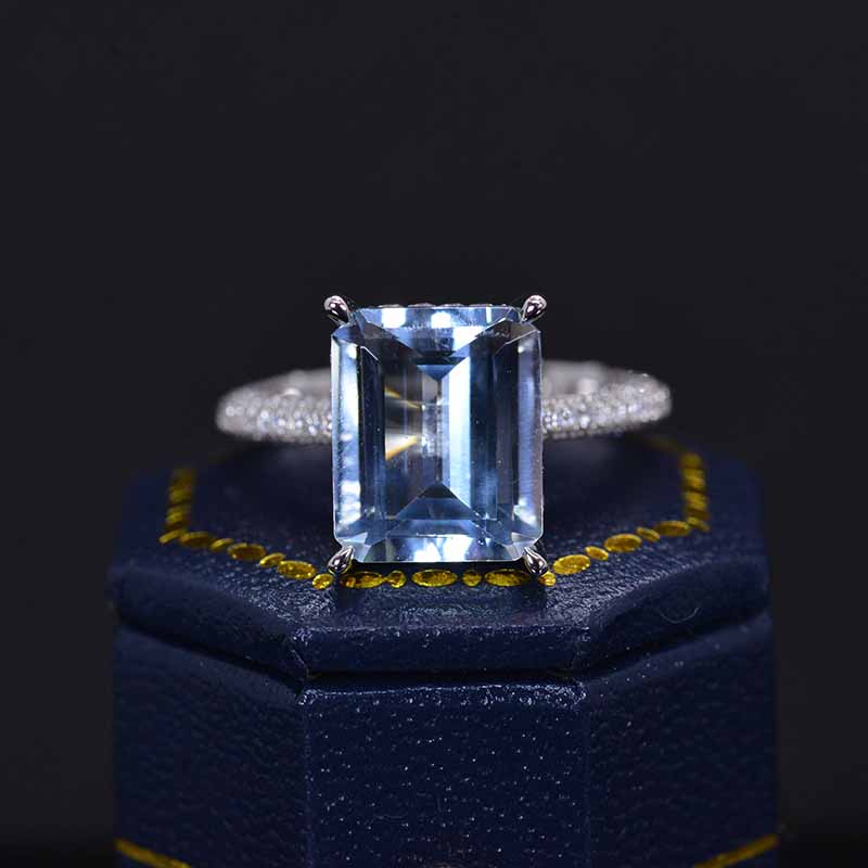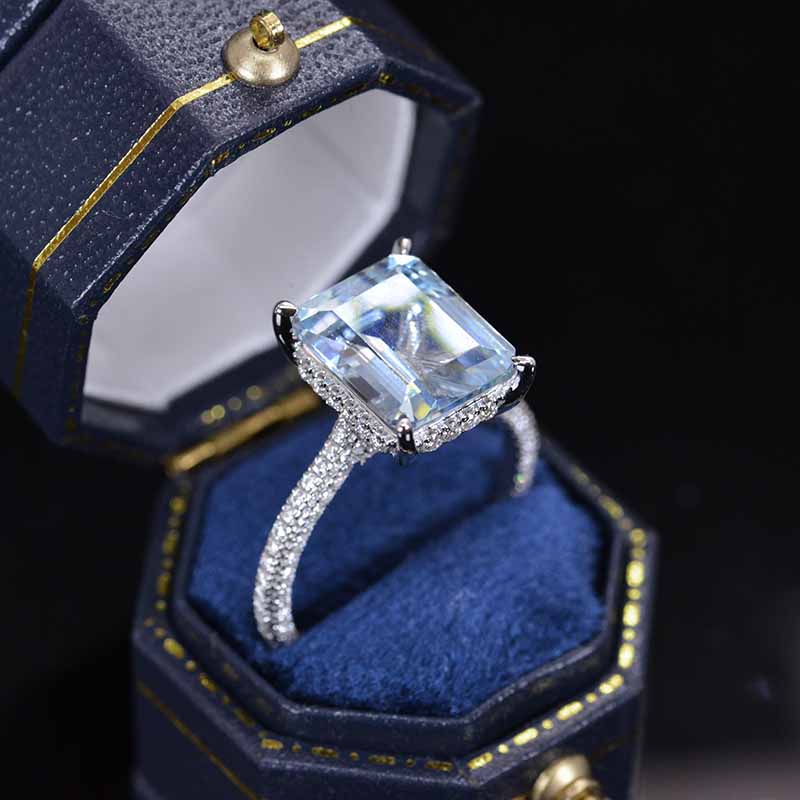 5ct Emerald Shaped Step Cut Aquamarine Ring, 5 Carat Aquamarine Engage - Giliarto