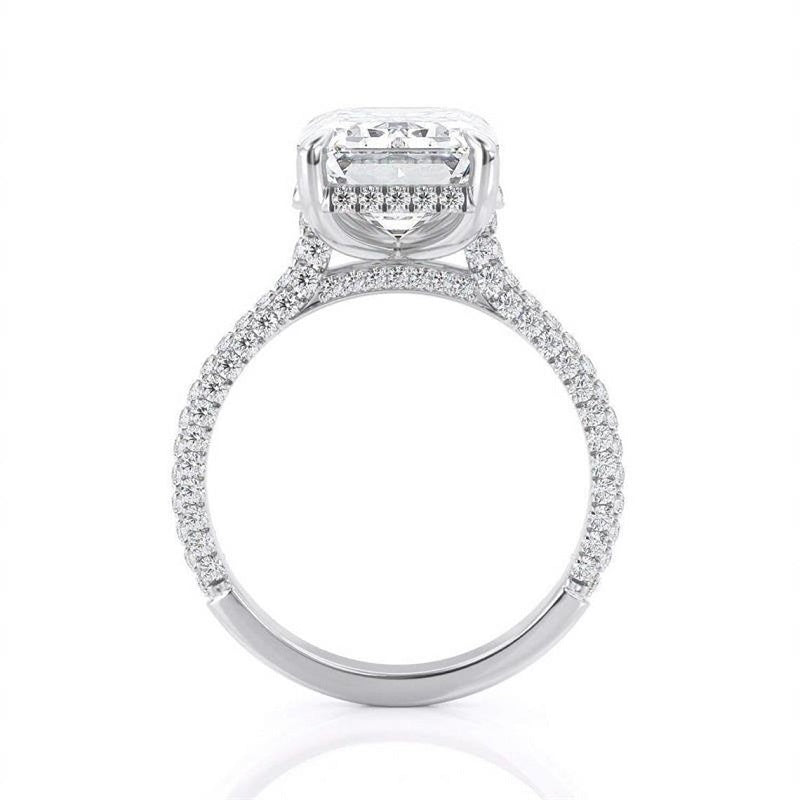 5ct Emerald Shaped Step Cut Aquamarine Ring, 5 Carat Aquamarine Engagement Ring, Natural Aquamarine Pave Accent Stones Hidden Halo Ring