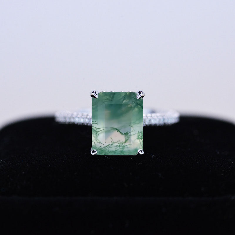 5ct Emerald Shaped Step Cut Genuine Moss Agate Ring, 5 Carat Moss Agat - Giliarto