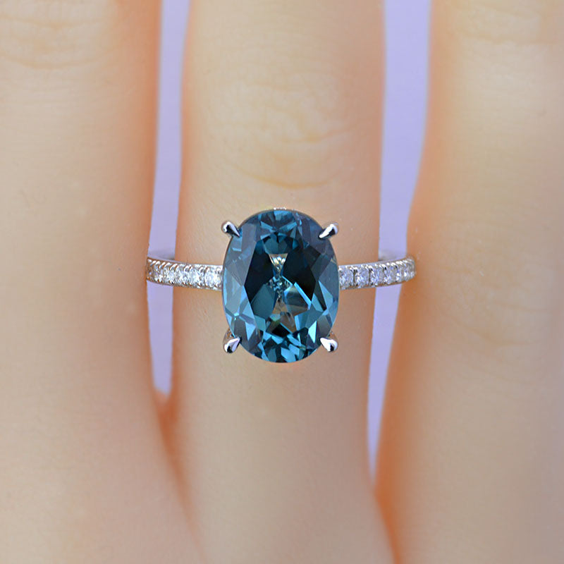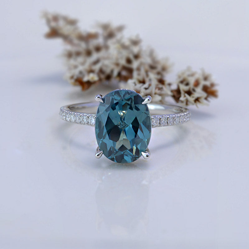 6Ct Oval Teal Sapphire Engagement Ring, Oval Cut Shape Dainty Engageme - Giliarto
