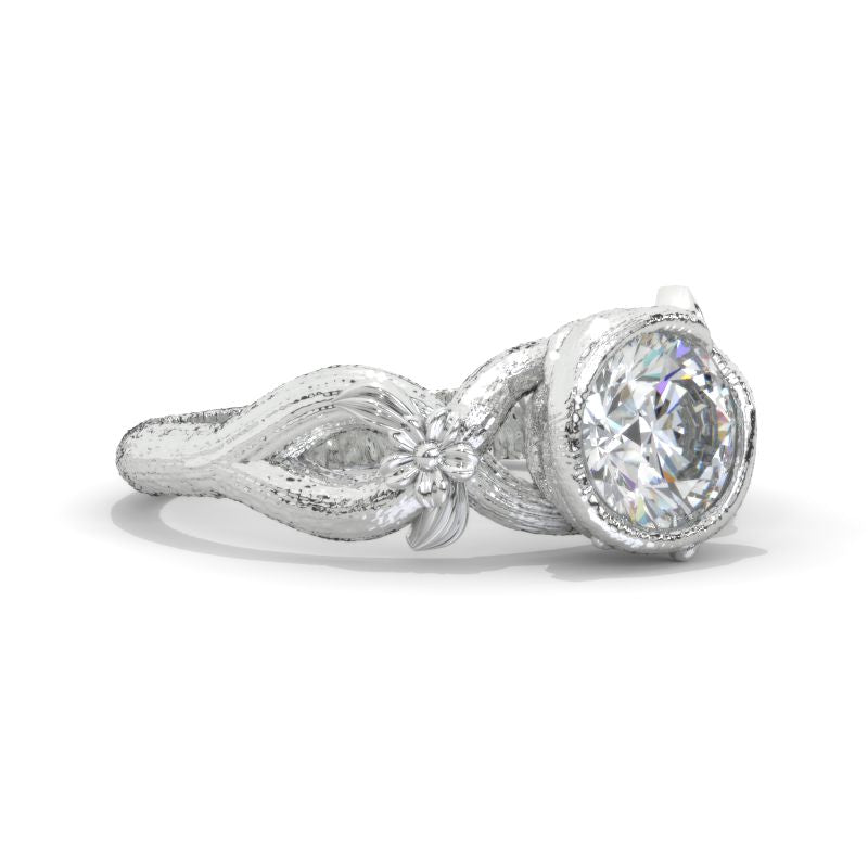LAB-Grown Diamond Round 7mm D-Colorless, VVS1-Clarity, VG-Cut, Ex-Polish, VG-Symmetry Center Stone with D-Colorless Approximately 0.2+CTW LAB-Grown Diamond (D-Colorless, VVS1clarity) Accent Stones 14K White Gold Ring.