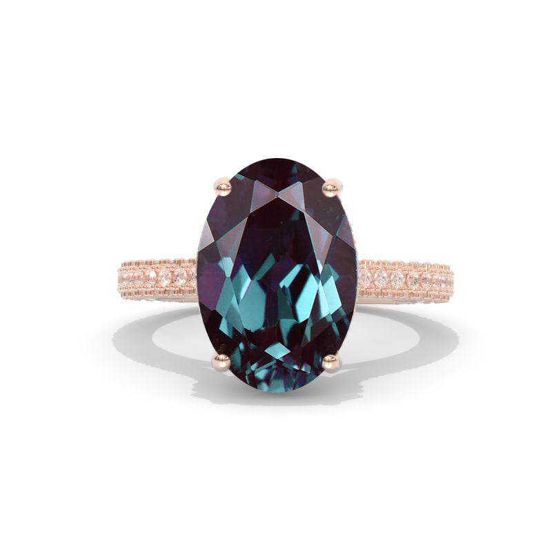 8 Carat Oval Cut 14x10mm Alexandrite Hidden Halo Rose Gold Engagement Ring