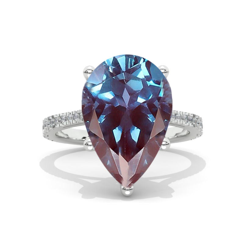 8 Carat Pear Alexandrite 14K White Gold Engagement Ring - Giliarto