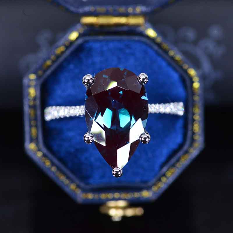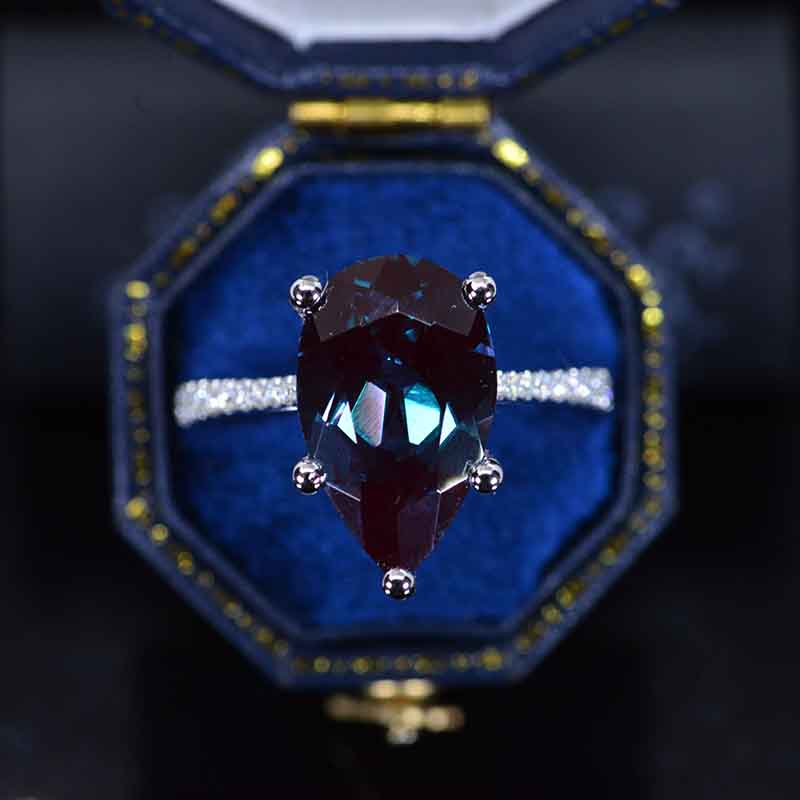The default design option features Pear Cut 16x10 mm Ethically LAB-Grown Alexandrite - Center Stone VVS1-Clarity, VG-Cut, Ex-Polish, VG-Symmetry set with D-Colorless Moissanite Accents