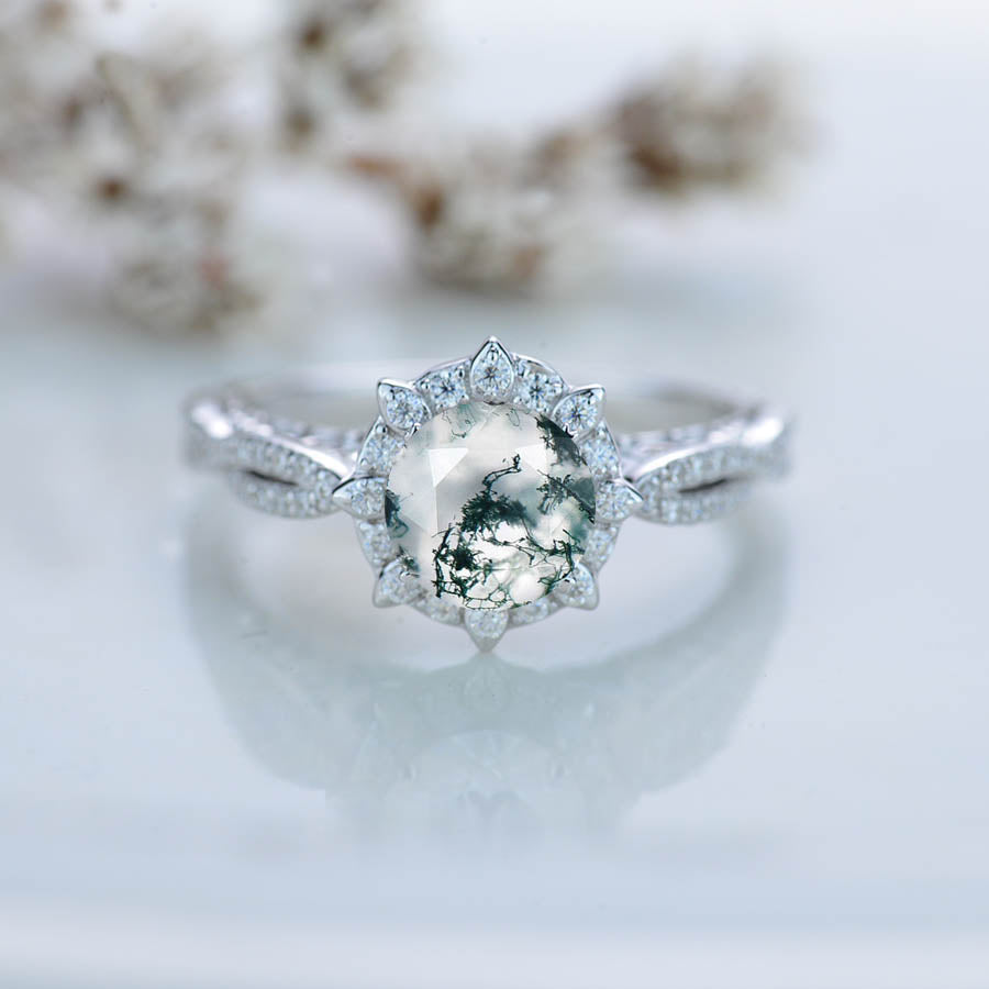 Adara Genuine Moss Agate Classic Engagement Ring - Giliarto