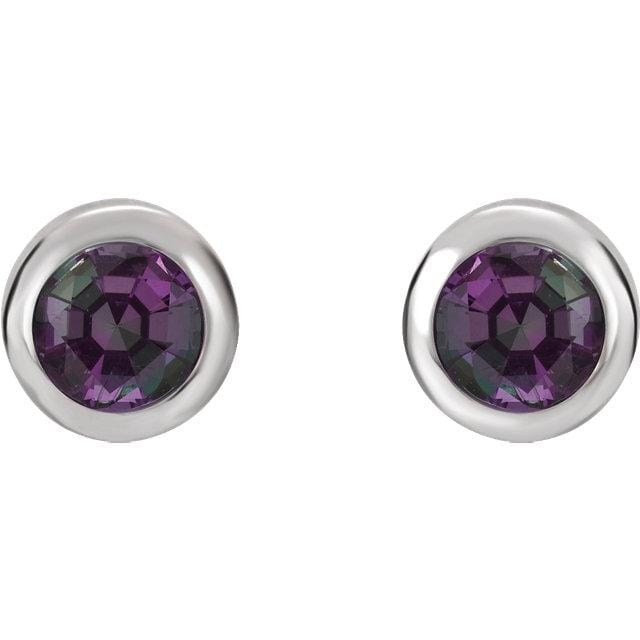 Round Genuine Alexandrite Bezel Set Stud 14 K White Gold Earrings