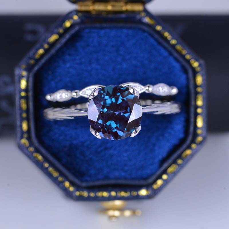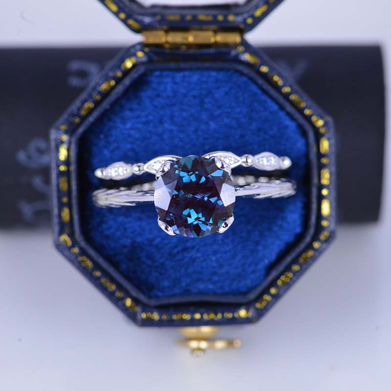 2 Carat Alexandrite Engagement Eternity Rings Eternity Set - Giliarto