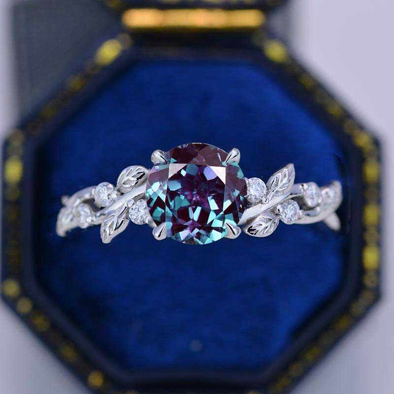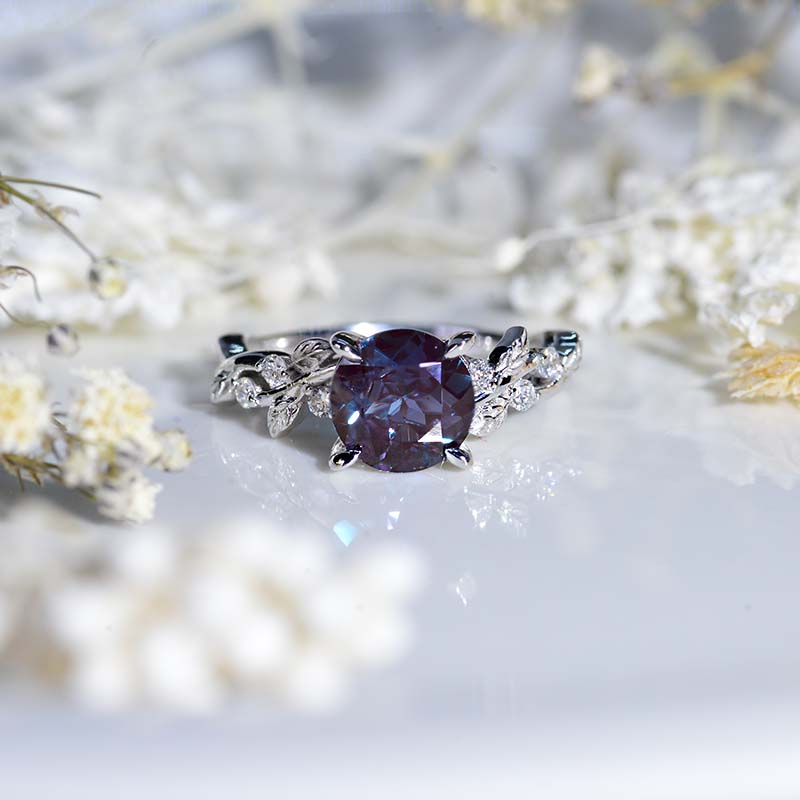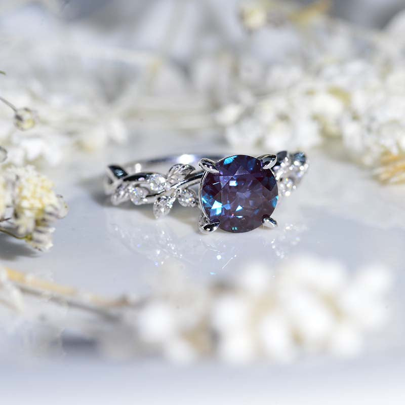 2 Carat Round Alexandrite Floral White Gold Engagement Ring - Giliarto