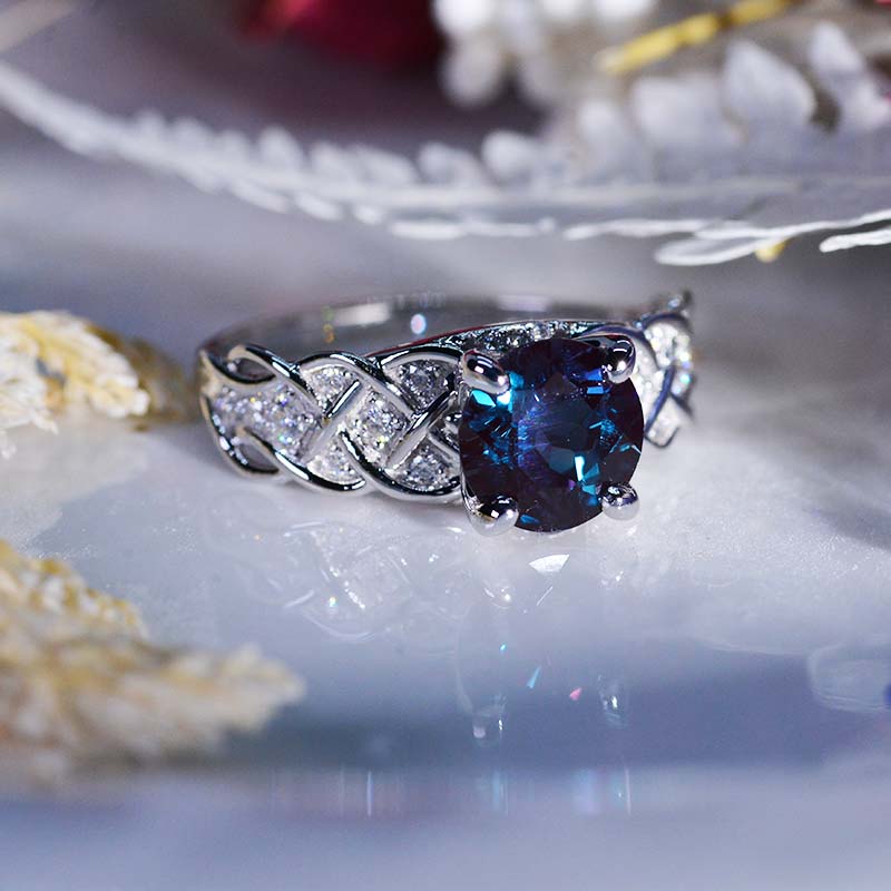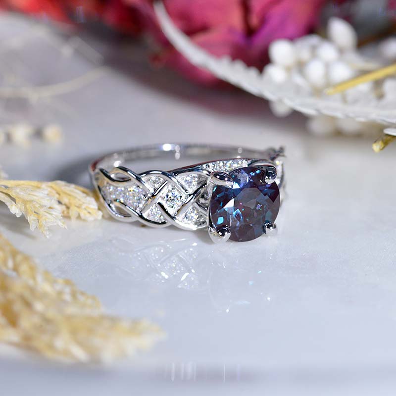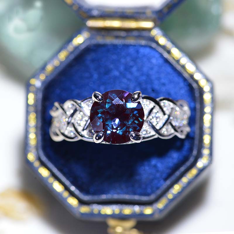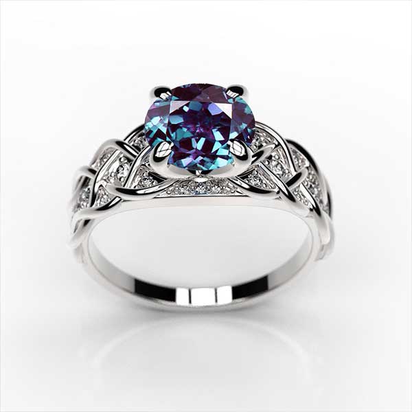 The default design option features 2 Carat Round 8mm Created Ethically Lab-Grown Alexandrite