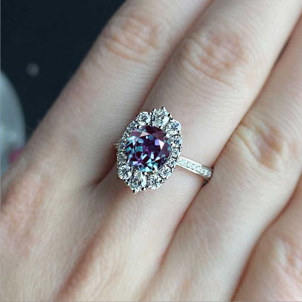 Alexandrite Halo 14 Yellow Gold Engagement Ring - Giliarto