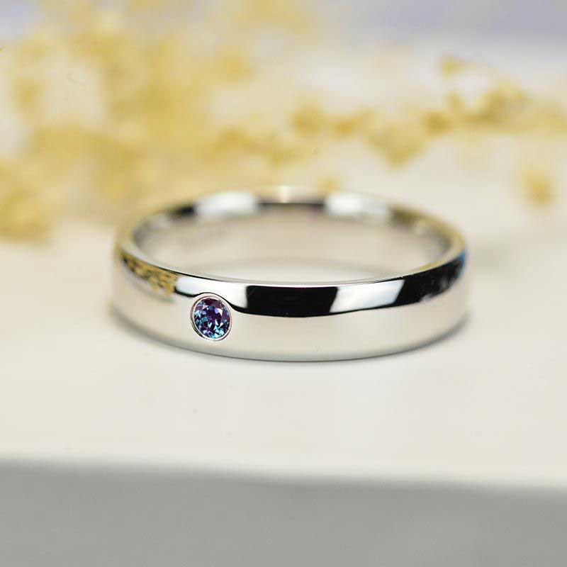 Round 2 mm, Ethically Lab-Grown Alexandrite  Ex-Cut, Ex-Polish, VG-Symmetry in 14K White Gold Men's Ring.