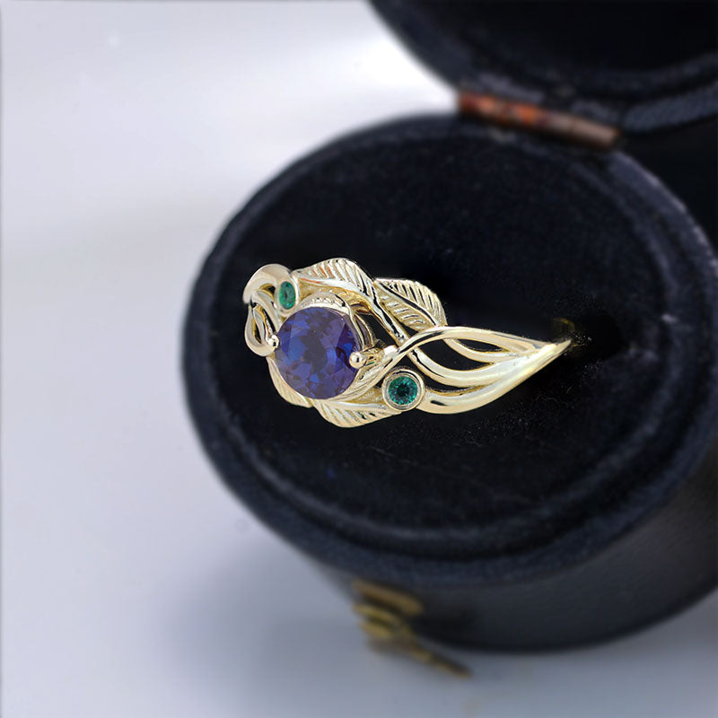 Alexandrite Yellow Gold Engagement Lattice Floral Accented Ring - Giliarto