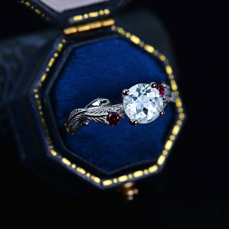 Aquamarine White Gold Floral Engagement Leaves Ring - Giliarto