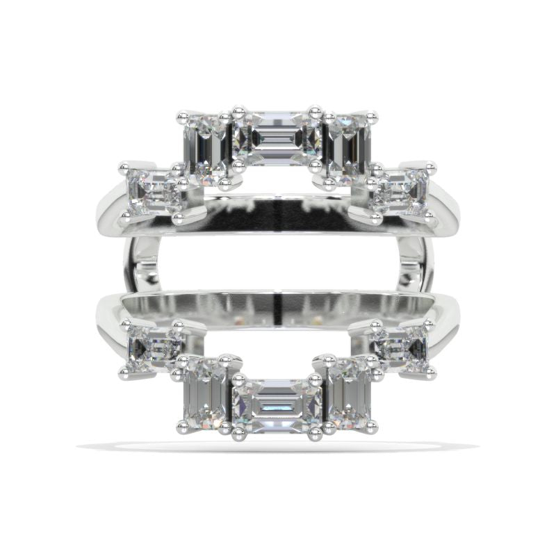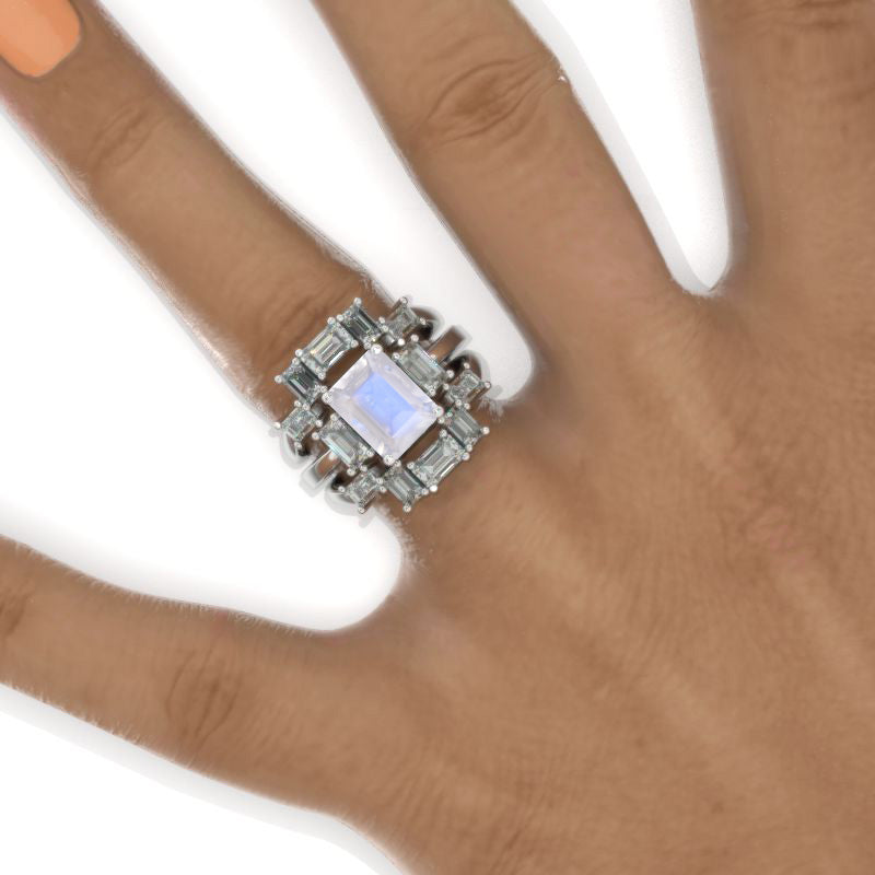 Art Deco Baguette Genuine Moonstone Double Ring Insert 14K White Gold - Giliarto