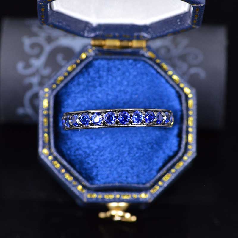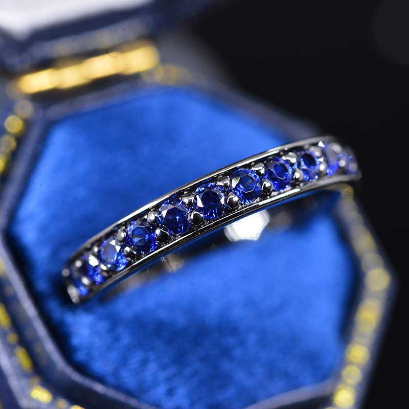 14K Black Gold 2.25mm Round Sapphire Anniversary Band Mounting