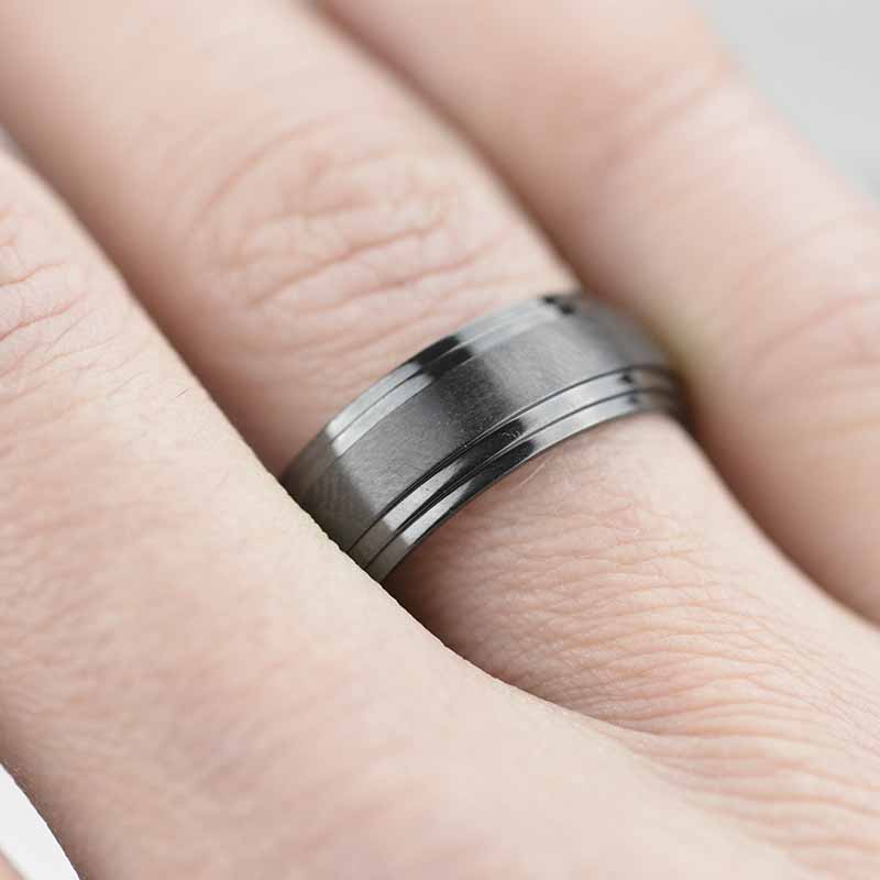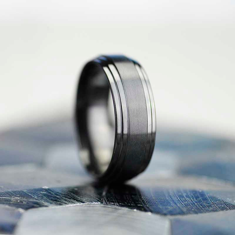Black Titanium Brushed Double Ridged Band - Giliarto