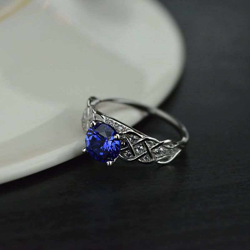 The default design option features 2 Carat Round 8mm Created  AAAAA -Grade Sapphire
