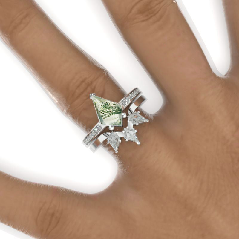 Carat Kite Genuine Moss Agate Engagement Ring. 3CT Fancy Shape Moss Agate Ring Set Model 736-12x8