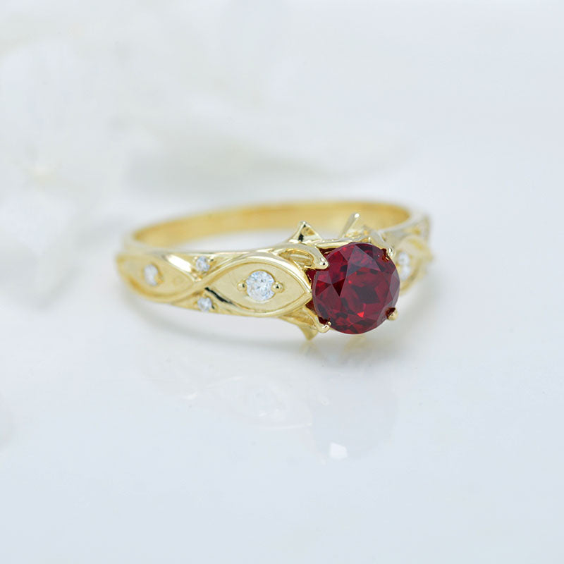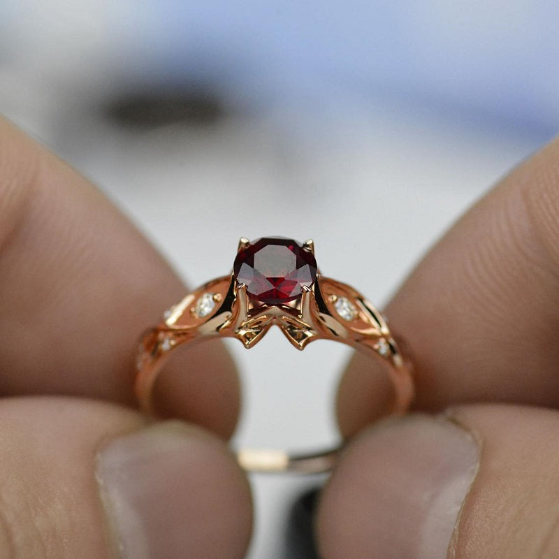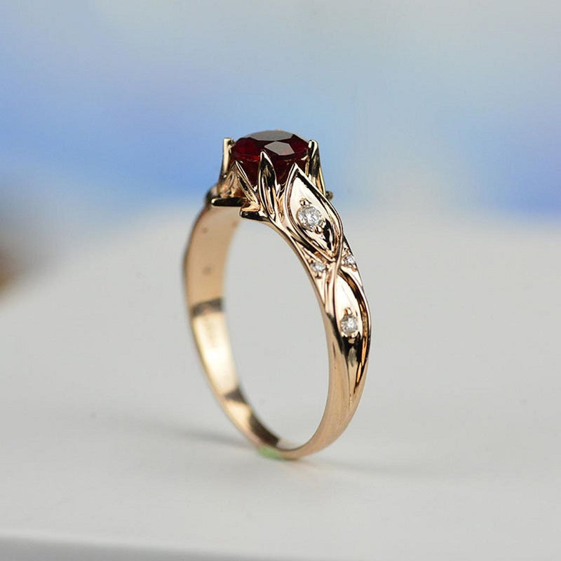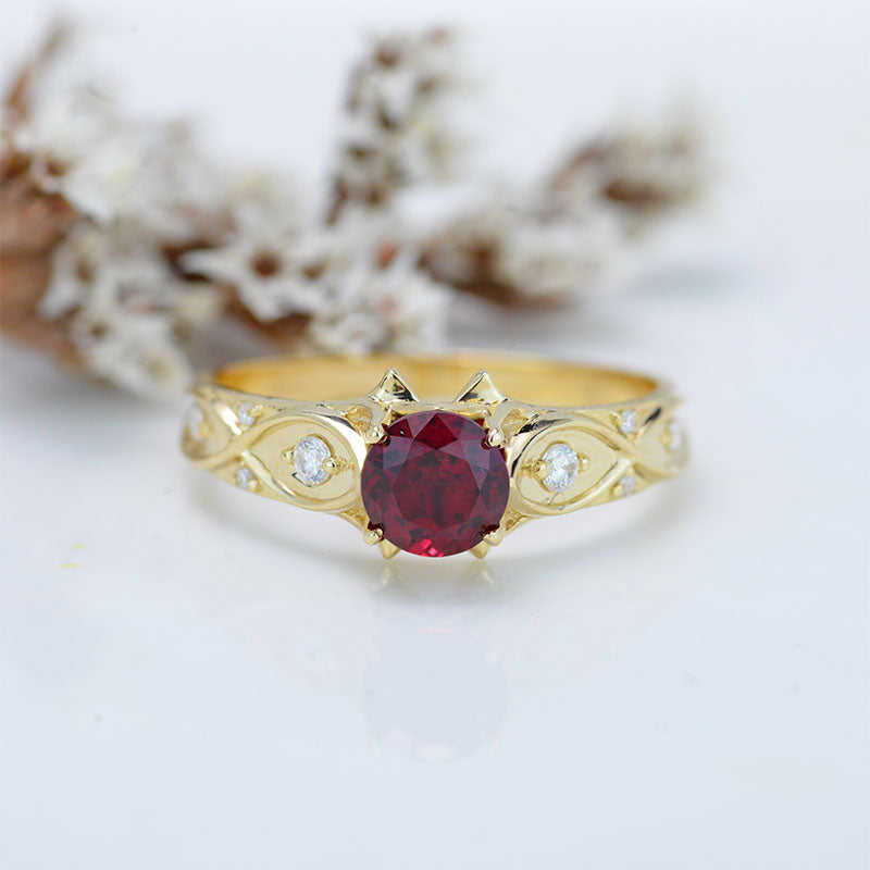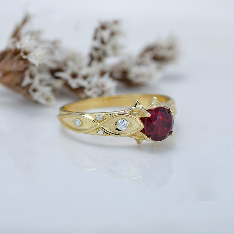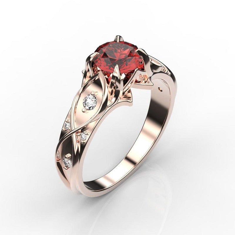 Celtic Ruby Round Center Stone Engagement 14K Rose Gold Ring Wedding Ring