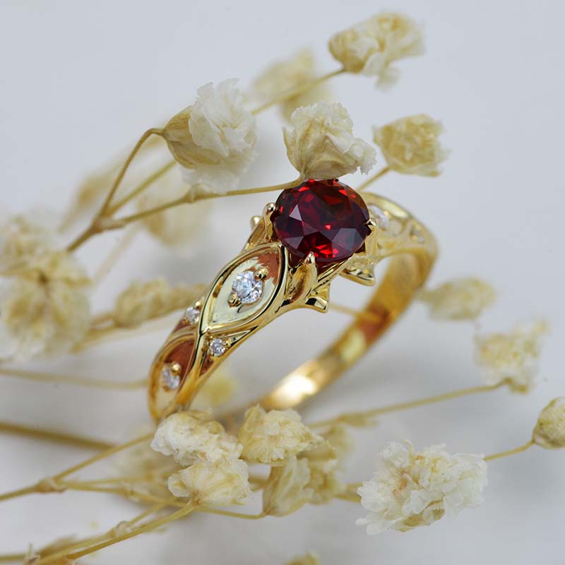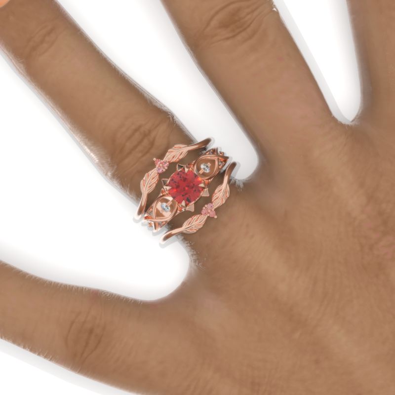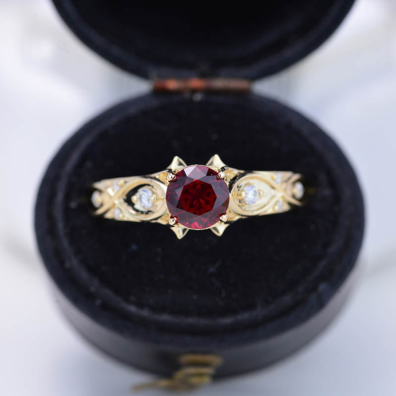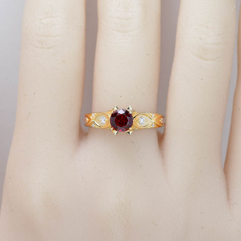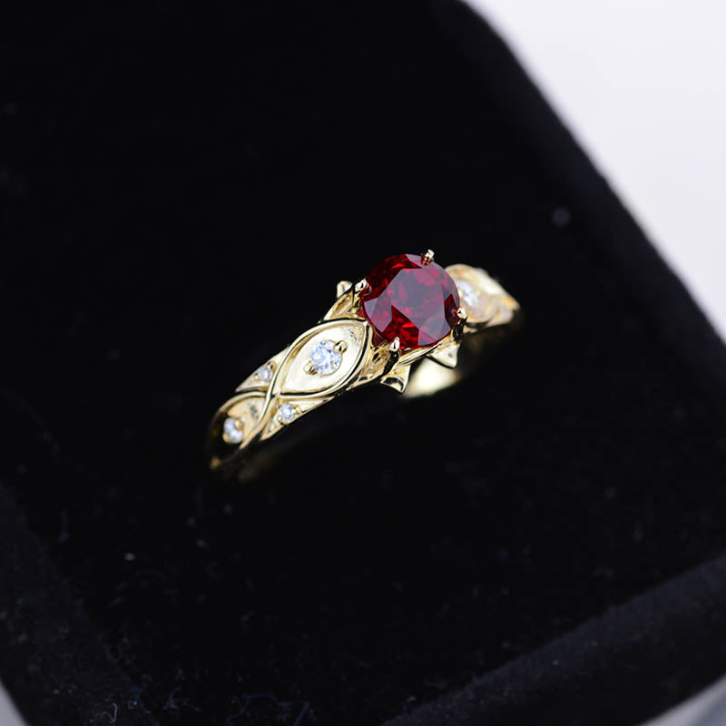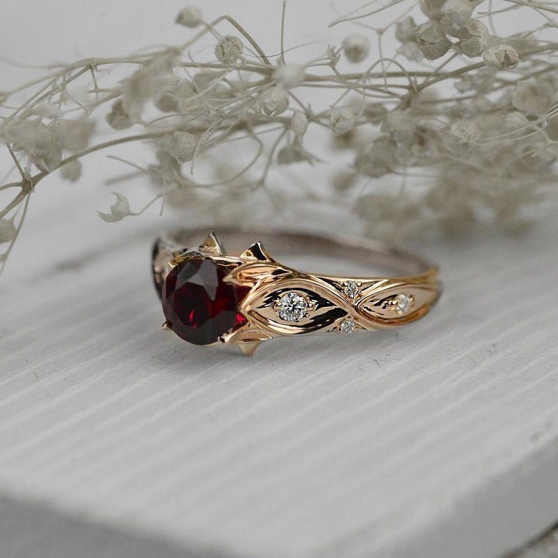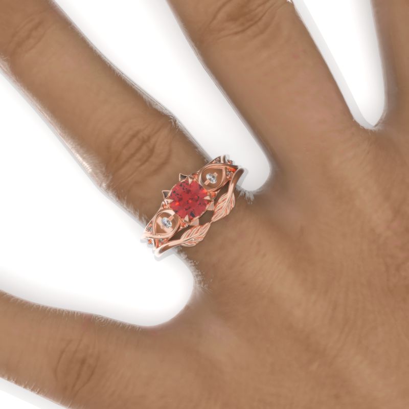Celtic Ruby Round Center Stone Engagement 14K Rose Gold Ring Wedding Ring