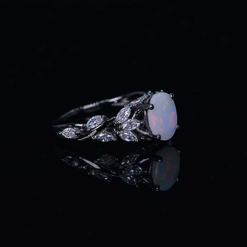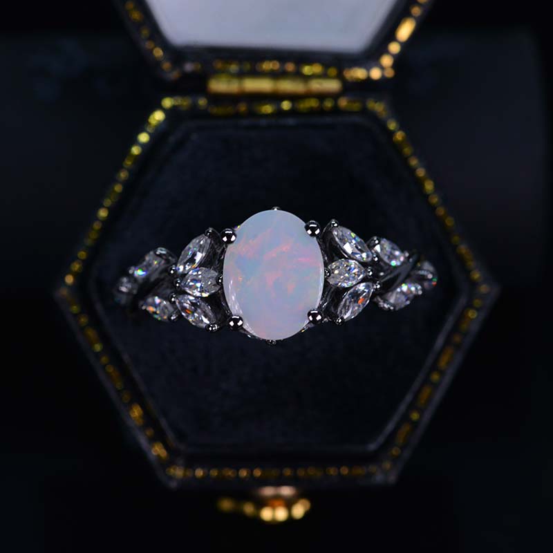 Celtic 2 Carat Oval Genuine Natural White Opal 14K Black Gold Engageme - Giliarto