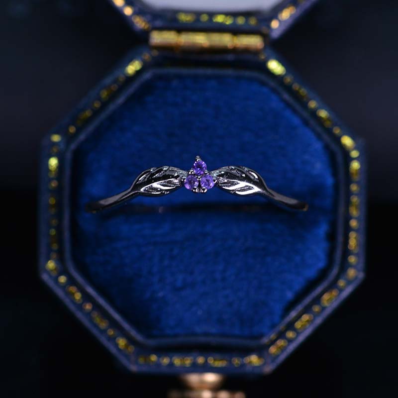 Celtic Amethyst Stackable 14K Black Gold Ring - Giliarto
