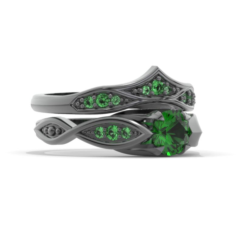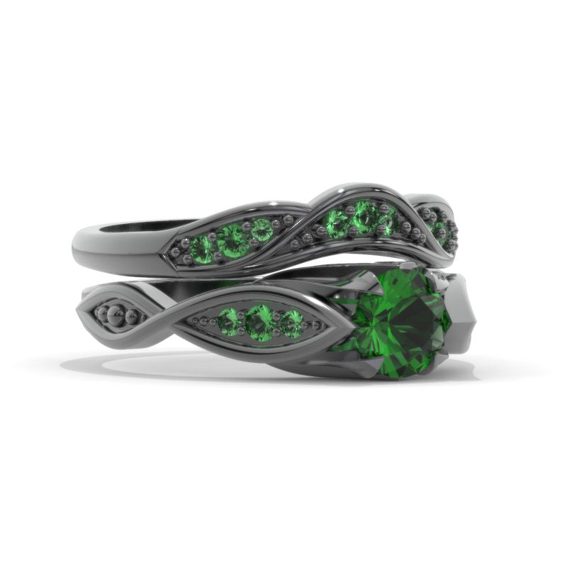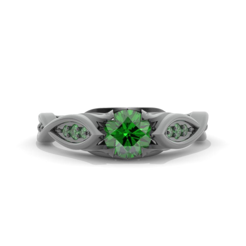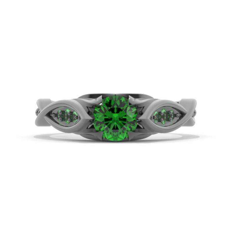 Celtic Emerald 14K Black Gold Celtic Floral Engagement Ring