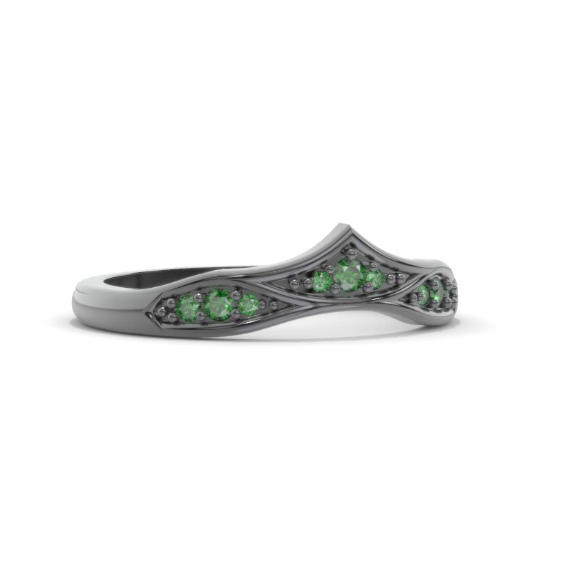 Celtic Emerald Curved Wedding 14K Black Gold Ring Ver 2 - Giliarto