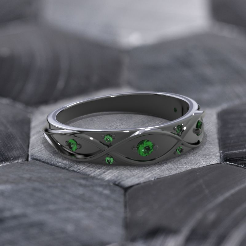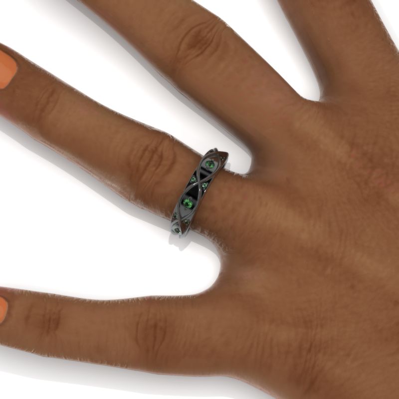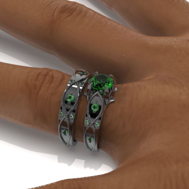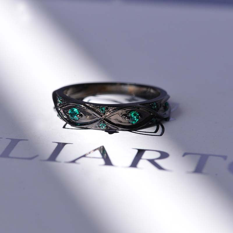 Celtic Emerald Wedding 14K Black Gold Ring - Giliarto