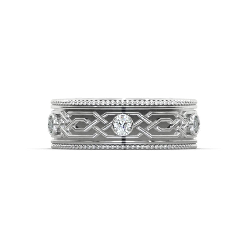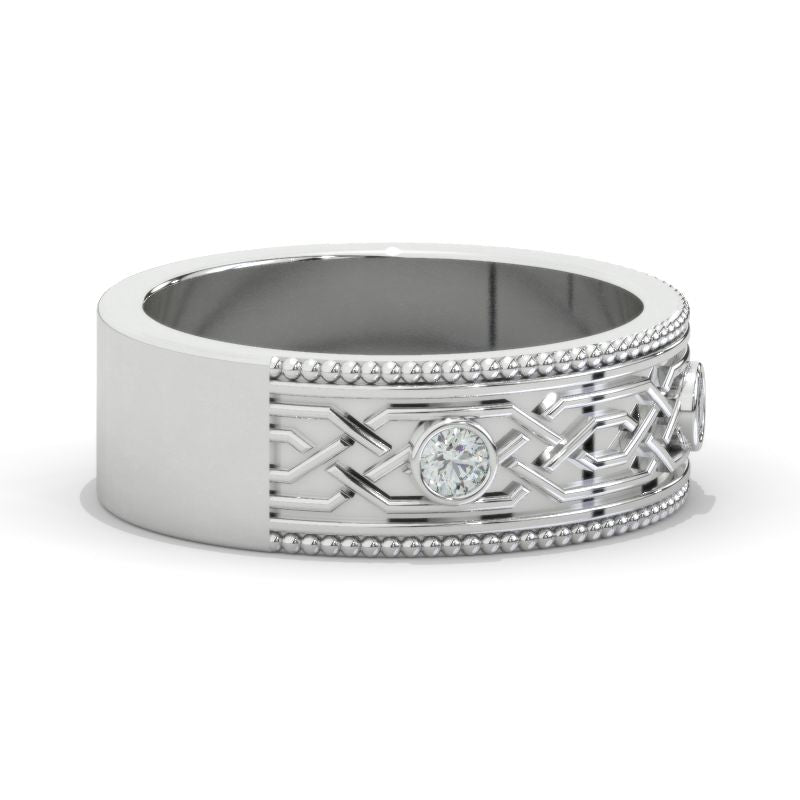 Celtic Giliarto Men's Ring with Diamond Stones 14K White Gold Ring