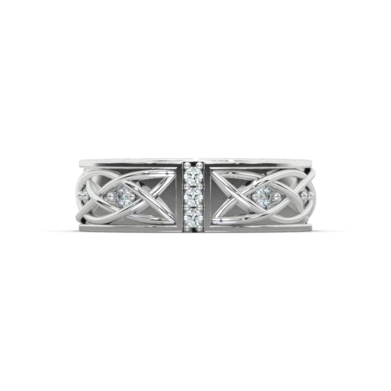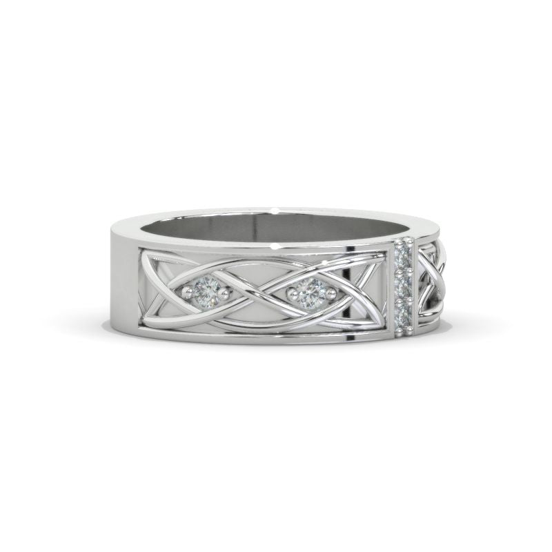 Celtic Men's Ring Diamond Stones 14K White Gold Ring