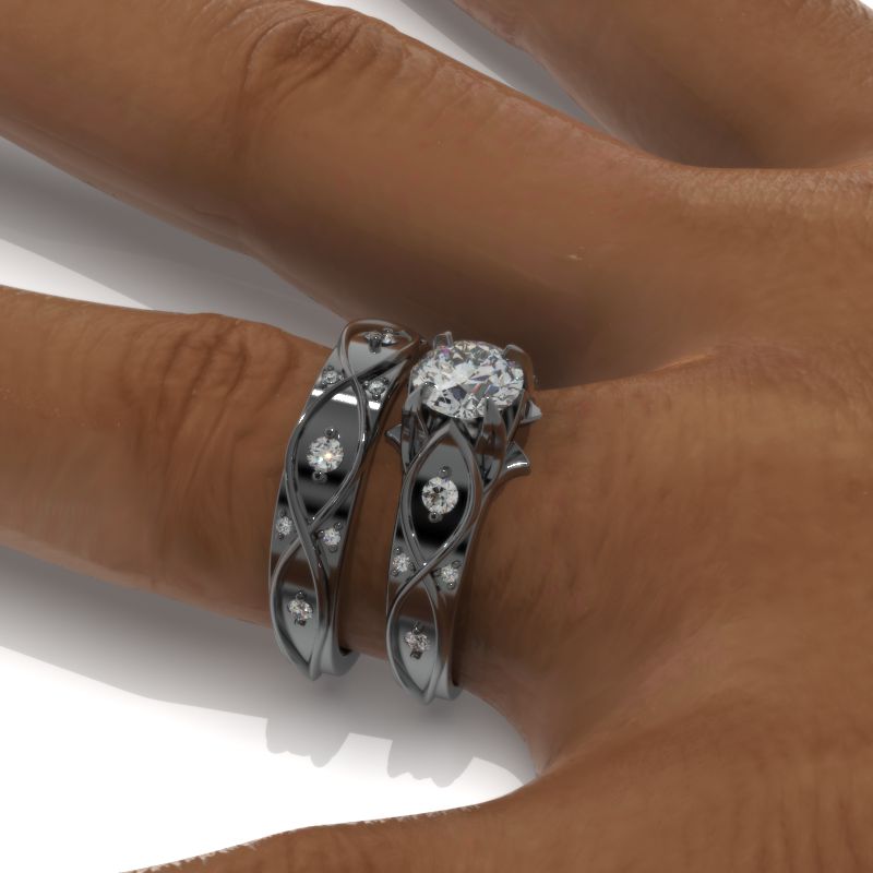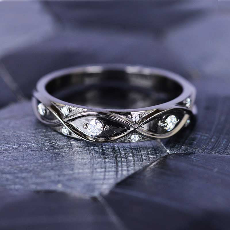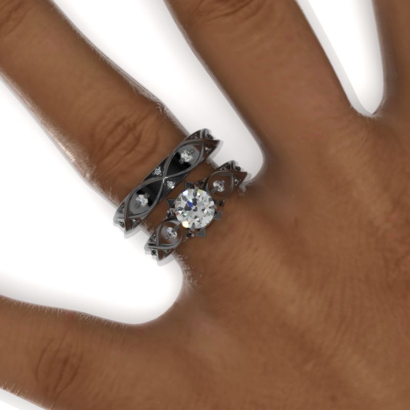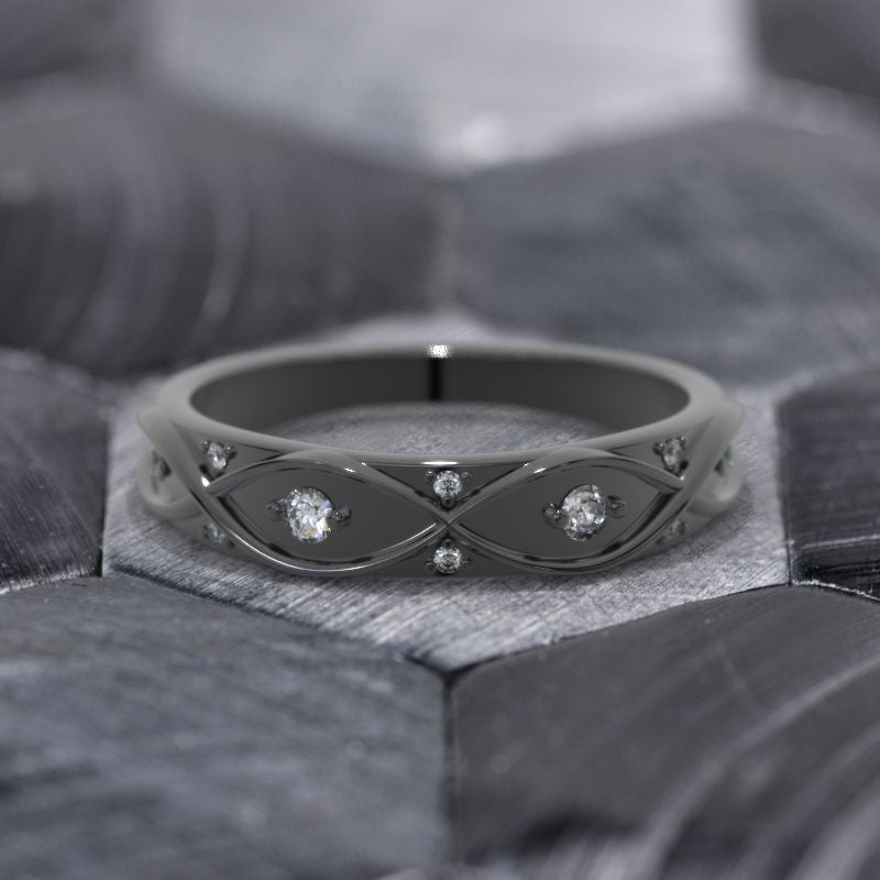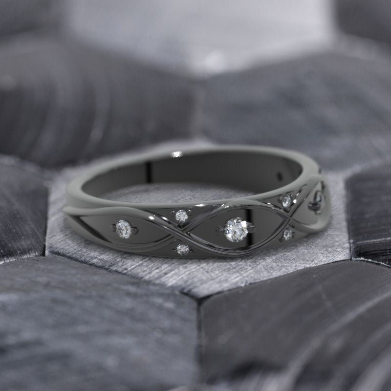 Celtic Moissanite Wedding 14K Black Gold Ring