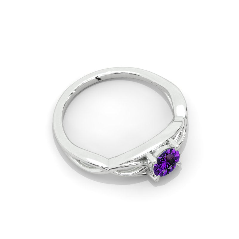 The default design option features Genuine Natural Amethyst- AAAA Grade 6mm Round VG-Cut, Ex-Polish, VG-Symmetry Center Stone (Colorless)