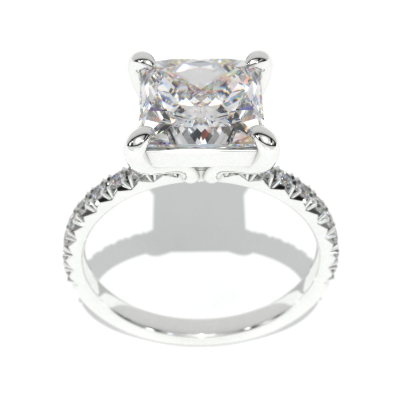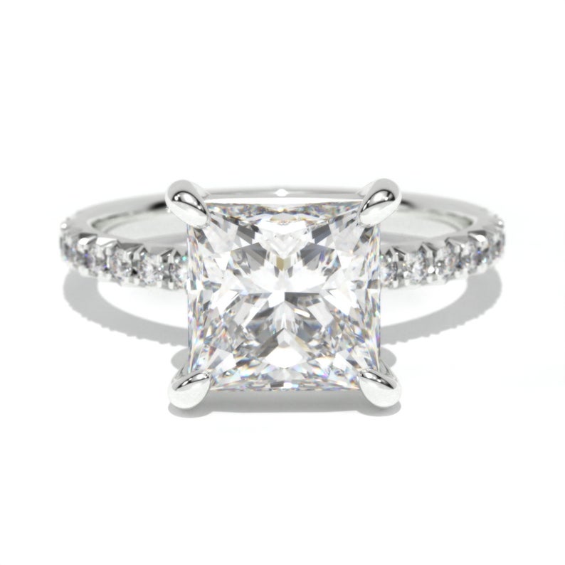 Solitaire Pave Accents Stones, Princess Cut Engagement ring.