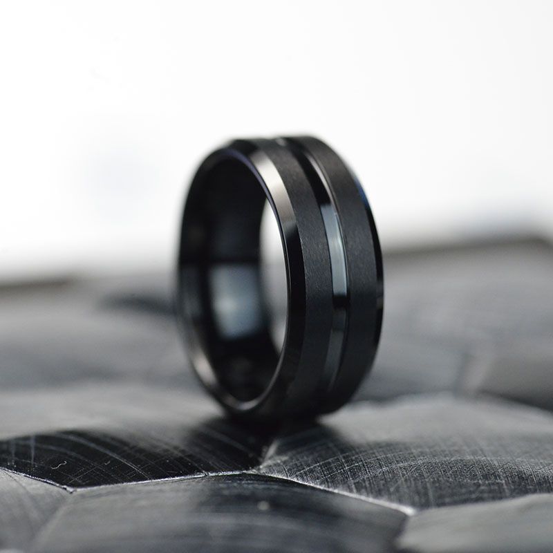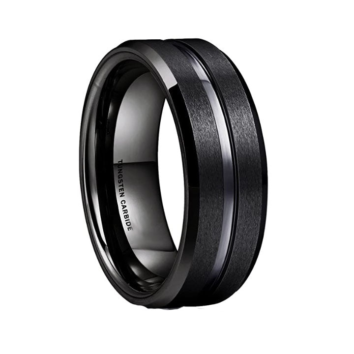 Classic Men Black Tungsten Carbide 8mm Polished Matte Brushed Finish Center Wedding Band Ring.