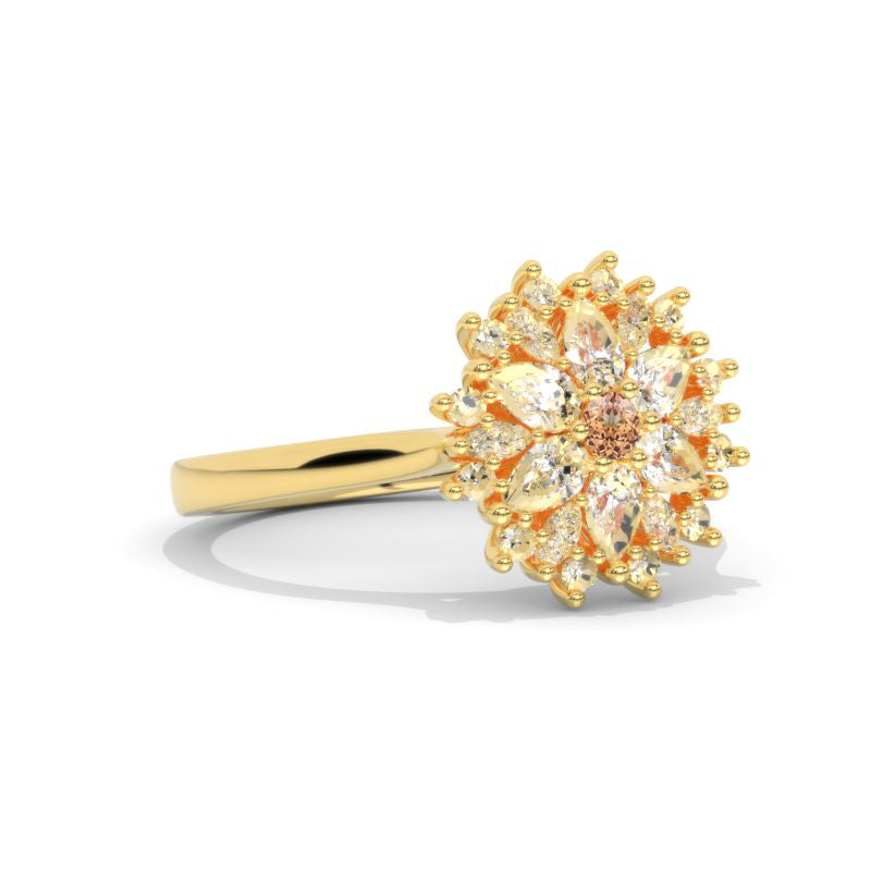 Cocktail Floral Genuine Peach Morganite Sunflower Cluster Ring Model 1 - Giliarto