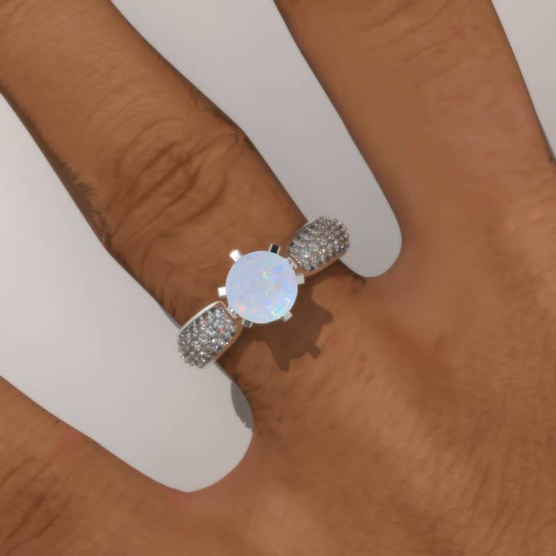 1.5 Carat Genuine Natural White Opal Engagement Ring