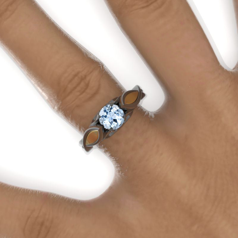 14K Black and Yellow Gold Genuine Aquamarine Celtic Aquamarine Engagement Ring