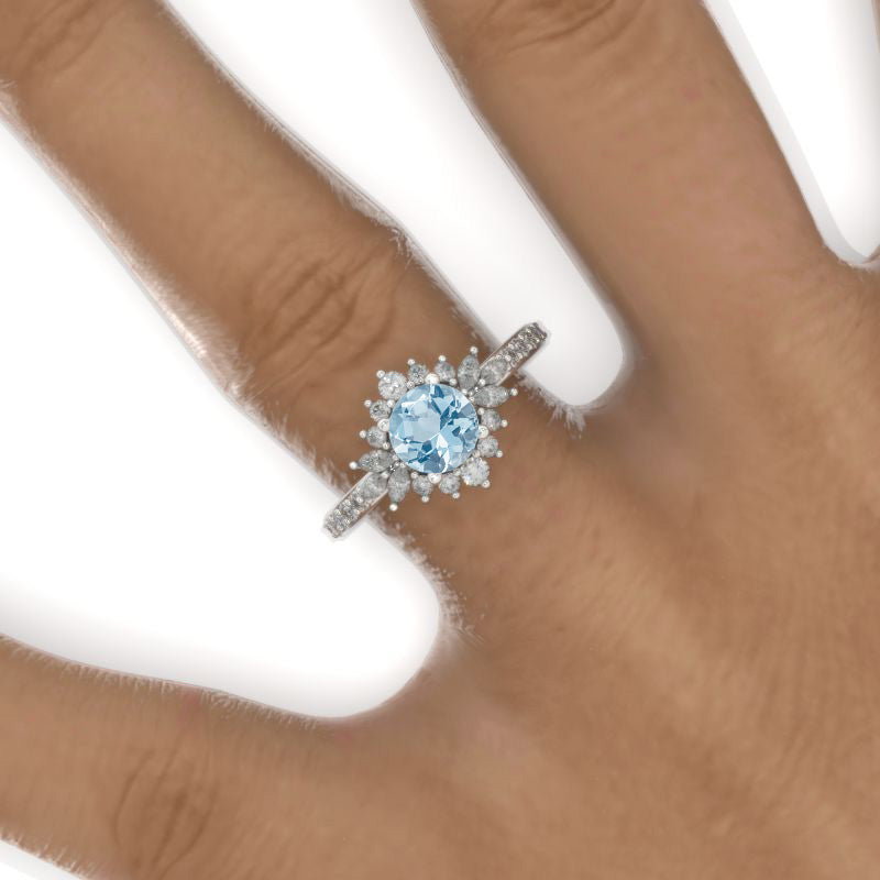 14K White Gold 1 Carat Genuine Aquamarine Halo Engagement Ring - Giliarto