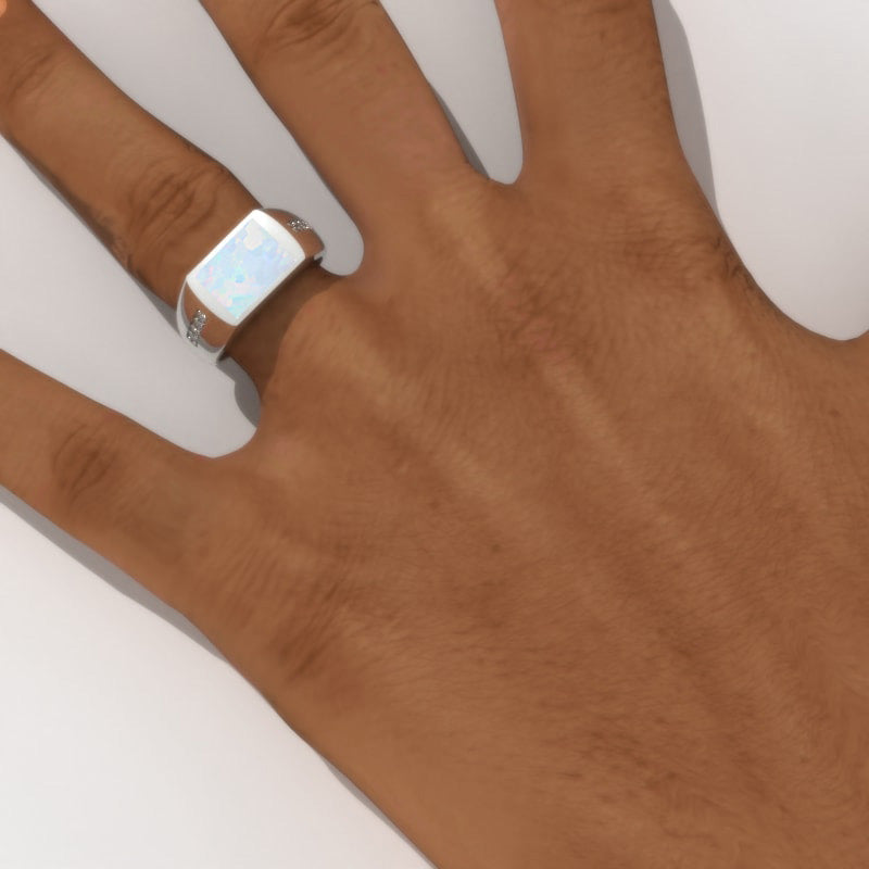 2 Carat Genuine Natural White Opal Men's Gold Ring. - Giliarto