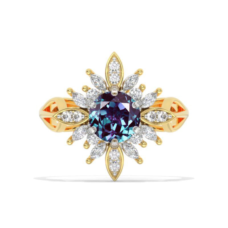 2 Carat Round Alexandrite Halo Engagement Ring - Giliarto