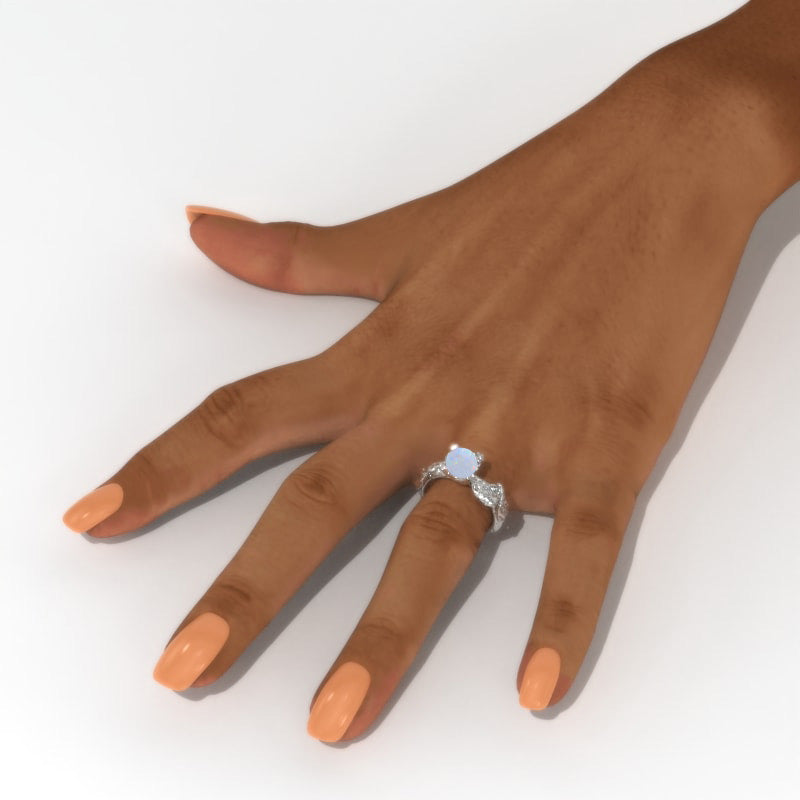 The default design option features 8mm Round Genuine Natural White OpalĀ Center StoneĀ VVS1-Clarity, VG-Cut, Ex-Polish, VG-Symmetry