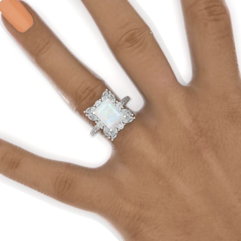 2Ct Radiant Cut Genuine Natural White Opal Halo Engagement Ring, Radia - Giliarto