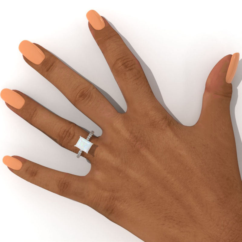 3.8 Carat Genuine Natural White Opal Emerald Cut Engagement Gold Ring.