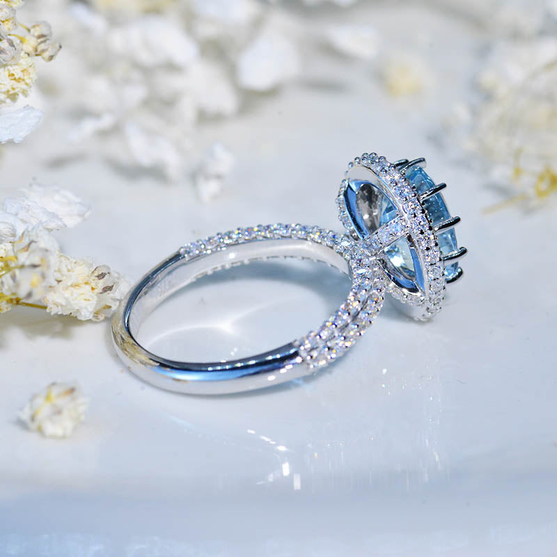 3 Carat Oval Cut Genuine Aquamarine Double Halo White Gold Engagement Ring Model 740